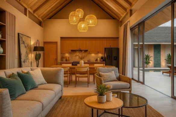 Az A típusú villák mindössze két exkluzív lakóegységet foglalnak magukban, kifejezetten azok számára kialakítva, akik a tágas élettereket, a magas szintű magánszférát és az emelt színvonalú életvitelt részesítik előnyben. Ezek a nagyvonalú, három hálószobás luxusvillák új mércét állítanak a bophuti tengeri panorámás életstílusban. Minden rezidencia bőséges méretű hálószobákkal, elegáns, egybenyitott nappali- és étkezőterekkel, valamint egy látványos, privát végtelenített medencével rendelkezik, amely vizuálisan egybeolvad a tenger horizontjával. A tervezési koncepció a modern luxust trópusi és balinéz zen hatásokkal ötvözi, természetes anyagok, kifinomult felületek és buja növényzet alkalmazásával, harmonikus és elszigetelt pihenőhelyet teremtve.