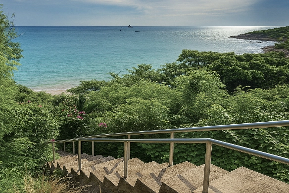 This generous 1016 sqm (approximately 0.6 Rai) land plot boasts a truly premium location on the exclusive North Eastern peninsular of Koh Samui, specifically within the prestigious Plai Laem district. This area is renowned for its high-end properties and convenient access to island amenities. Experience ultimate island living, as this beachside land is situated a mere 50 meters from the coastline, with convenient direct beach access also available just 50 meters away, perfect for leisurely strolls and watersports.